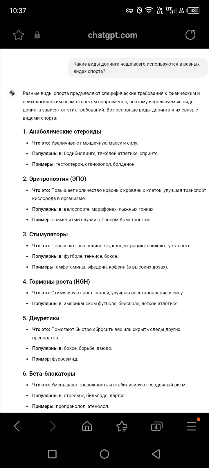 Решил пообщаться с ИИ по поводу допинга в спорте.