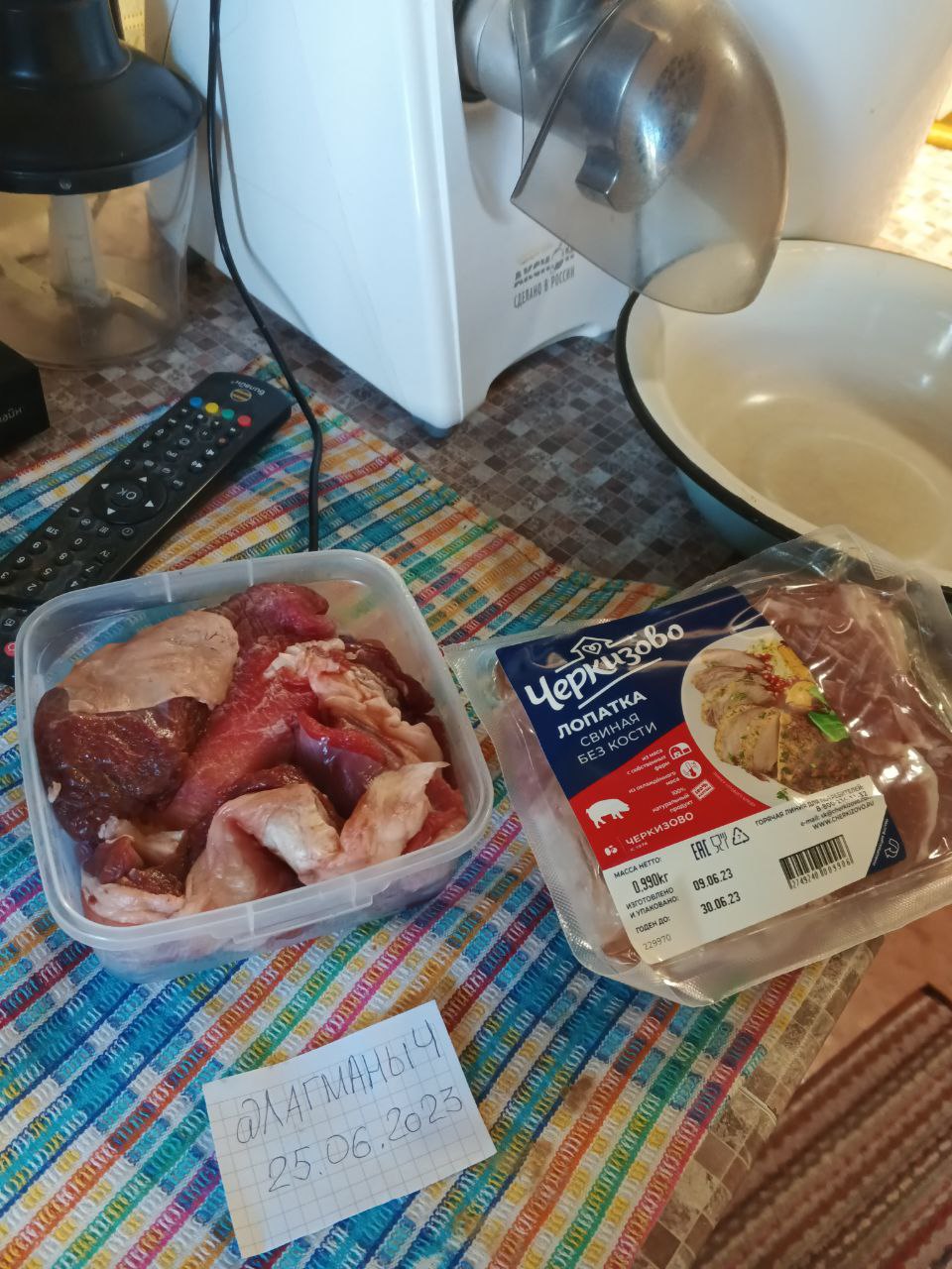 Сначала смолол мякоть баранины и свинины, используя мелкую решетку