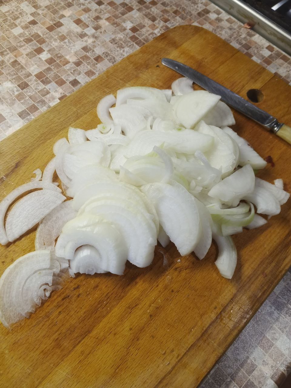 Нарезаем репчатый лук полукольцами